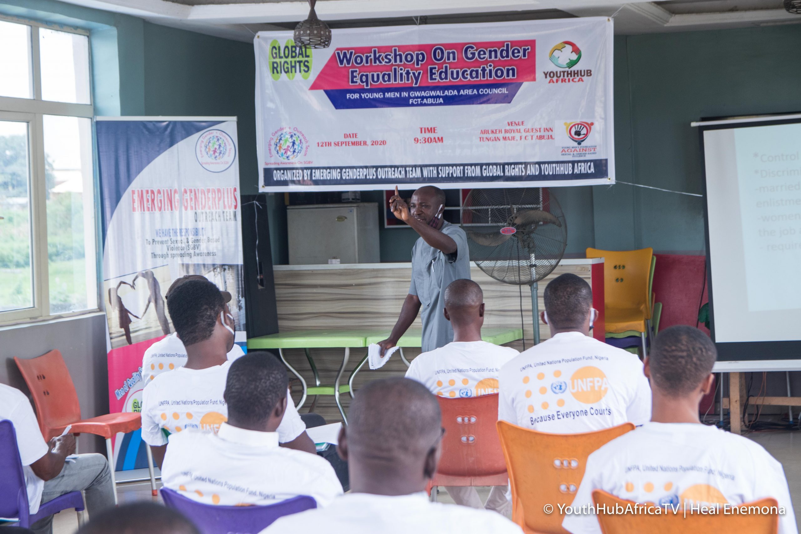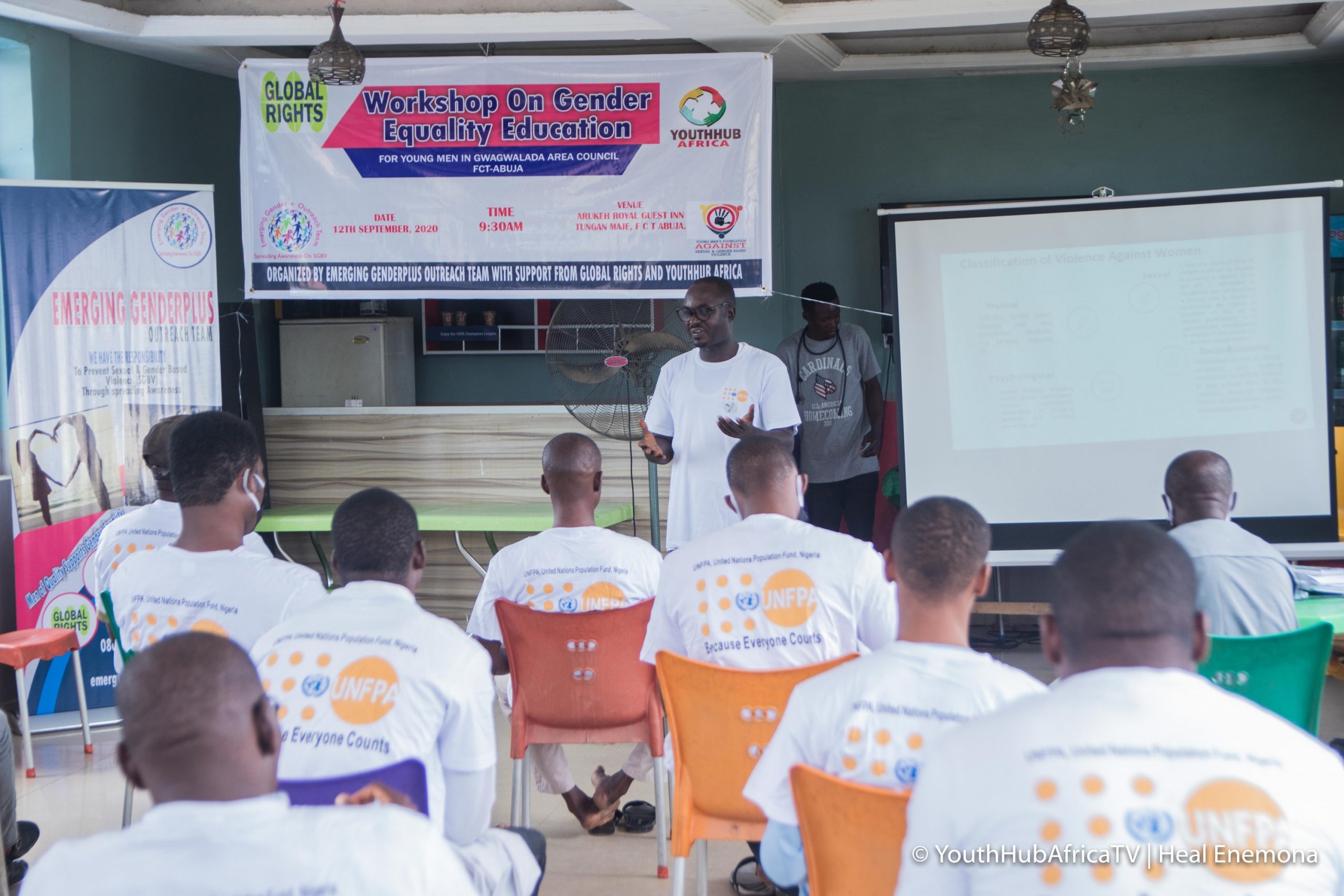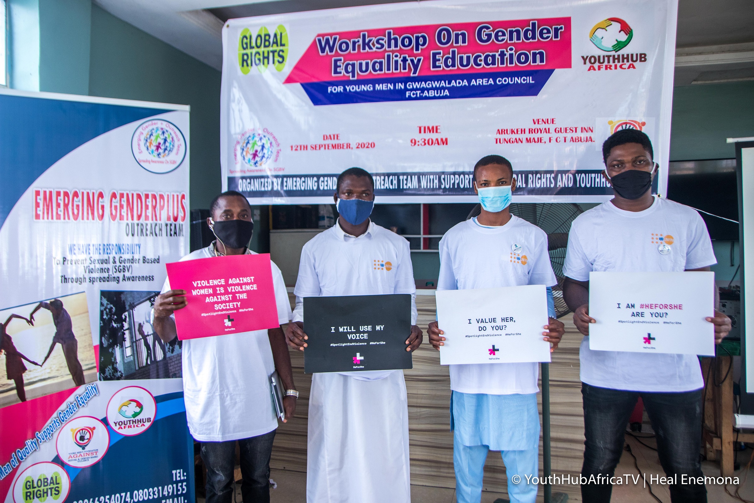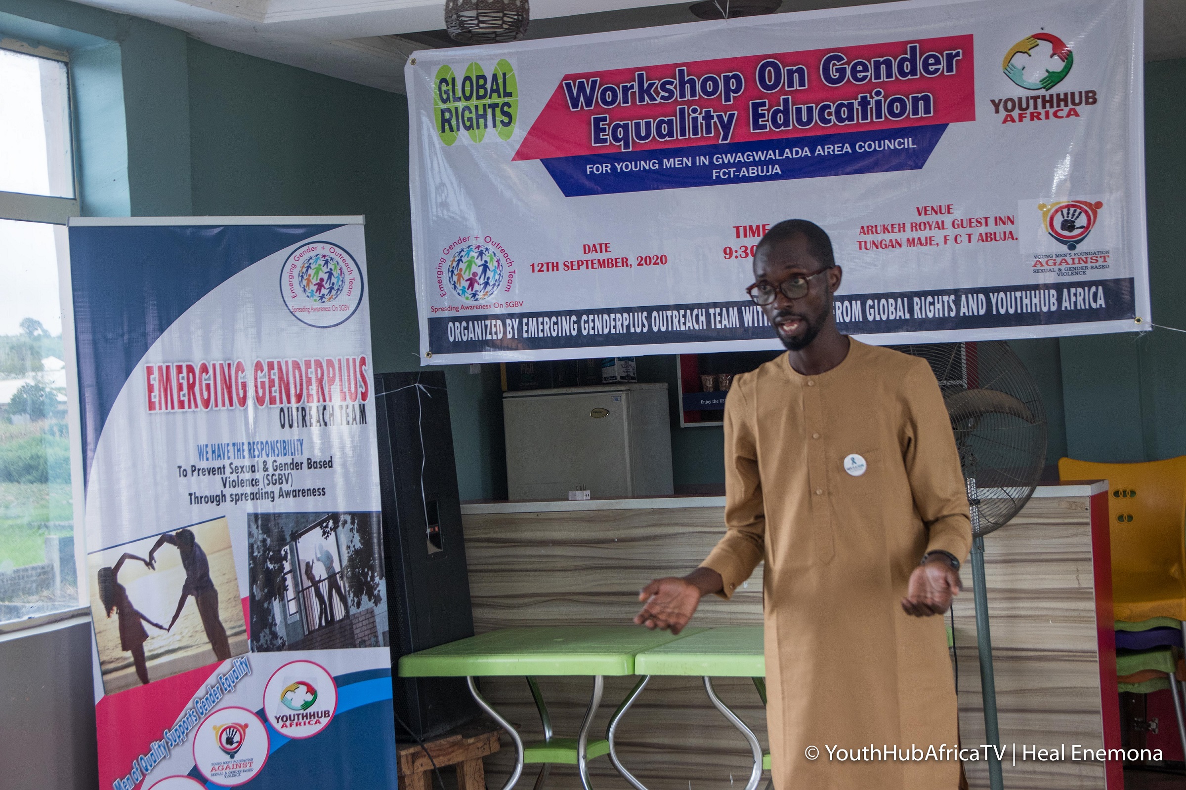 Emerging Genderplus Outreach Team organized a one-day training in September 2020, with the support of Global Rights, YOUTHHUBAFRICA and Young Men’s Network against SGBV to engage young men in Gwagwalada, Abuja on dismantling sexual and gender based violence through its workshop on gender equality education for young men. The Executive Director and Chief Volunteer Officer of Emerging Genderplus Outreach Team, Aaron Egot, said if we do not effectively reach men and boys, many of the efforts to end gender inequalities will be either thwarted or simply ignored, because men are the gatekeepers of current gender orders, hence, have an important role to play against gender based violence. Egot said, he hopes that the workshop would help young men and boys commit to protect and defend the rights of women and girls in their villages.